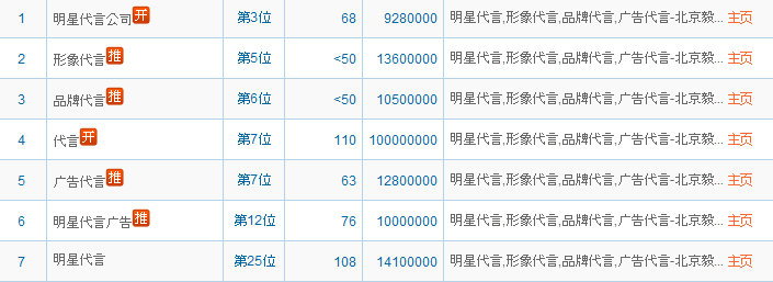 優(yōu)化要求:在百度,google等搜索引擎查找明星代言等相關(guān)關(guān)鍵字,能第一時(shí)間在全國(guó)各大網(wǎng)站拓印而出